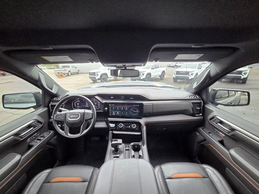 Sterling Metallic 2024 GMC Sierra 1500 AT4 4WD 10-Speed Automatic 3.0L I6 10-Speed Automatic, 4WD, Jet Black With Kalahari Accents Leather.